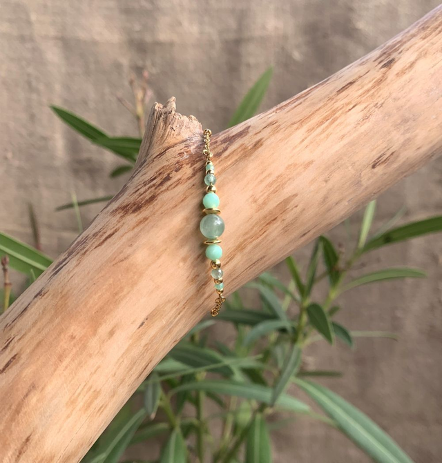 Bracelet fin gourmette en pierres naturelles d'aventurine et chrysoprase