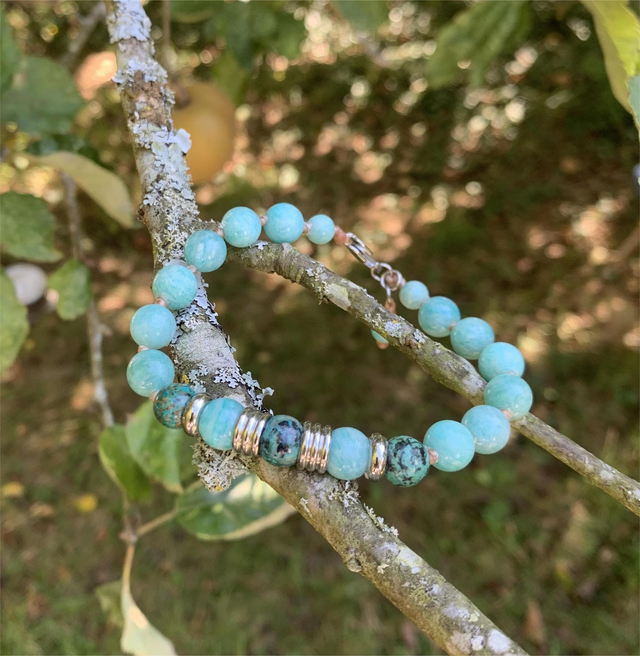 Bracelet homme avec des pierres naturelles de 8mm en amazonite et chrysocolle